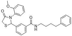 Chemical Name: | 3-(3-(2-methoxyphenyl)-4-oxothiazolidin-2-yl)-N-(4-phenylbutyl)benzamide |
