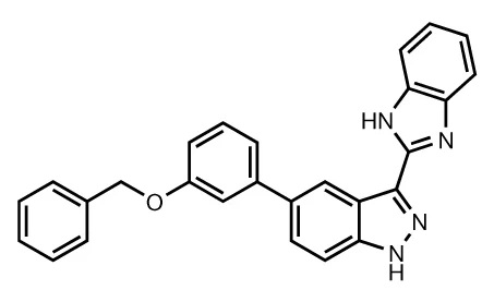 SMILES: | C1=CC=CC=C1COC1=CC(C2=CC=C3NN=C(C4=NC5C=CC=CC=5N4)C3=C2)=CC=C1 |