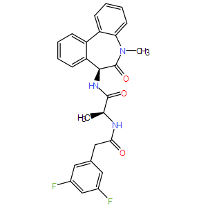 Chemical Name: | N-[(1S)-2-[[(7S)-6,7-Dihydro-5-methyl-6-oxo-5H-dibenz[b,d]azepin-7-yl]amino]-1-methyl-2-oxoethyl]-3,5-difluorobenzeneacetamide |