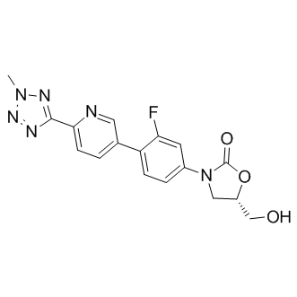Synonyms: | (S)-3-(3-fluoro-4-(6-(2-methyl-2H-tetrazol-5-yl)pyridin-3-yl)phenyl)-5-(hydroxymethyl)oxazolidin-2-one |
