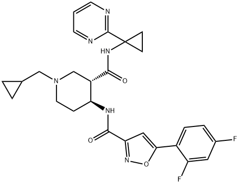 Chemical Name: | 3-Piperidinecarboxamide, 1-(cyclopropylmethyl)-4-[[[5-(2,4-difluorophenyl)-3-isoxazolyl]carbonyl]amino]-N-[1-(2-pyrimidinyl)cyclopropyl]-, (3S,4S)- |