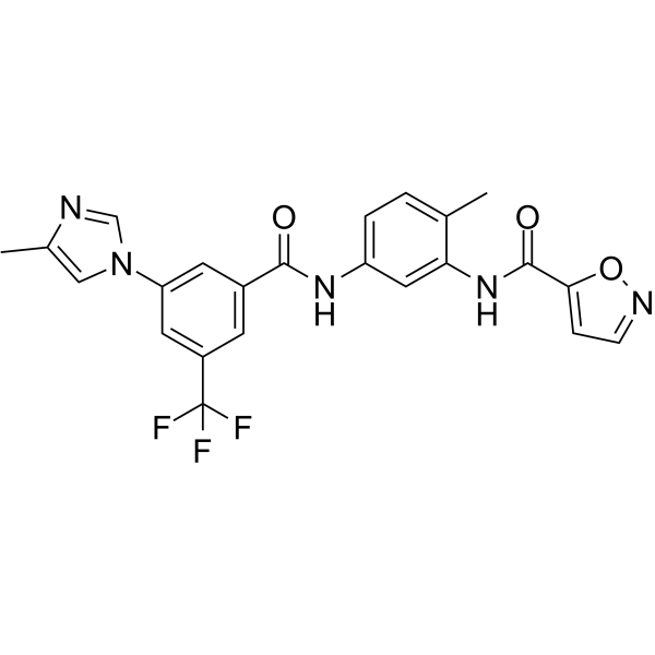 Synonyms: | 5-Isoxazolecarboxamide, N-[2-methyl-5-[[3-(4-methyl-1H-imidazol-1-yl)-5-(trifluoromethyl)benzoyl]amino]phenyl]-;N-[2-Methyl-5-({[3-(4-Methyl-1h-Imidazol-1-Yl)-5-(Trifluoromethyl)phenyl]carbonyl}amino)phenyl]isoxazole-5-Carboxamide;N-[2-methyl-5-[[[3-(4-methyl-1-imidazolyl)-5-(trifluoromethyl)phenyl]-oxomethyl]amino]phenyl]-5-isoxazolecarboxamide;HMS3265A05;HMS3265A06;HMS3265B05;HMS3265B06;Q27163210;N-(2-methyl-5-(3-(4-methyl-1H-imid;AWL-II-38.3;G15969;N-(2-Methyl-5-({(3-(4-methyl-1H-imidazol-1-yl)-5-(trifluoromethyl)phenyl)carbonyl} amino)phenyl)isoxazole-5-carboxamide;SCHEMBL15556278;CHEBI:91324;AKOS040756484;MS-28673;BRD-K68191783-001-01-2;GLXC-03072;1135205-94-5;CS-0014509;DA-50827;IYUFHBXMTTXZBE-UHFFFAOYSA-N;N-[2-methyl-5-[[3-(4-methylimidazol-1-yl)-5-(trifluoromethyl)benzoyl]amino]phenyl]-1,2-oxazole-5-carboxamide;HY-18832;EX-A5904 |