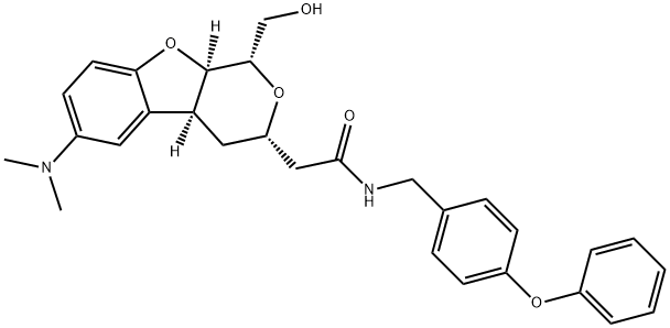 Chemical Name: | 2-[(1S,3S,4As,9aR)-6-(dimethylamino)-1-(hydroxymethyl)-3,4,4a,9a-tetrahydro-1H-pyrano[3,4-b]benzofuran-3-yl]-N-[(4-phenoxyphenyl)methyl]acetamide |