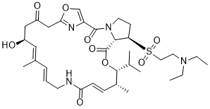 3H-21,18-Nitrilo-1H,22H-pyrrolo[2,1-c][1,8,4,19]dioxadiazacyclotetracosine-1,7,16,22(4H,17H)-tetrone,26-[[2-(diethylamino)ethyl]sulfonyl]-8,9,14,15,24,25,26,26a-octahydro-14-hydroxy-4,12-dimethyl-3-(1-methylethyl)-,(3R,4R,5E,10E,12E,14S,26R,26aS)-;Dalfopristin;3H-21,18-Nitrilo-1H,22H-pyrrolo[2,1-c][1,8,4,19]dioxadiazacyclotetracosine-1,7,16,22(4H,17H)-t...;3H-21,18-Nitrilo-1H,22H-pyrrolo[2,1-c][1,8,4,19]dioxadiazacyclotetracosine-1,7,16,22(4H,17H)-tetrone,26-[[2-(diethylamino)eth;3H-21,18-Nitrilo-1H,22H-pyrrolo[2,1-c][1,8,4,19]dioxadiazacyclotetracosine-1,7,16,22(4H,17H)-tetrone,26-[[2-(diethylamino)ethyl]sulfonyl]-8,9,14,15,24,25,26,26a-octahydro-14-hydroxy-4,12-dimethyl-3-(1;DalfopristinDISCONTINUED;(3R,4R,5E,10E,12E,14S,26R,26aS)-26-[[2-(DiethylaMino)ethyl]sulfonyl]-8,9,14,15,24,25,26,26a-octahydro-14-hydroxy-4,12-diMethyl-3-(1-Methylethyl)-3H-21,18-nitrilo-1H,22H-pyrrolo[2,1-c][1,8,4,19]dioxadiazacyclotetracosine-1,7,16,22(4H,17H)-tetr;RP 54476;Dalfopristin Mesylate;(3R,4R,5E,10E,12E,14S,26R,26aS)-26-[[2-(Diethylamino)ethyl]sulfonyl]-8,9,14,15,24,25,26,26a-octahydro-14-hydroxy-4,12-dimethyl-3-(1-methylethyl)-3H-21,18-nitrilo-1H,22H-pyrrolo[2,1-c][1,8,4,19]dioxadi;Dalfopristin (mesylate) (112362-50-2 free base) |