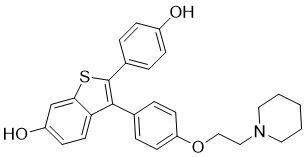 SMILES: | S1C2C=C(C=CC=2C(=C1C1C=CC(=CC=1)O)C1C=CC(=CC=1)OCCN1CCCCC1)O |