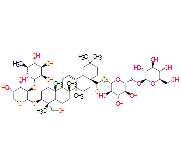 SMILES: | O[C@@H]1[C@@H](O)[C@H](OC[C@@H]2[C@@H](O)[C@H](O)[C@@H](O)[C@H](OC([C@@]3(CC[C@]4(C)C5=CC[C@@]6([H])[C@@]4(C)CC[C@]7([H])[C@]6(C)CC[C@H](O[C@]8([H])OC[C@H](O)[C@H](O)[C@H]8O[C@@]9([H])[C@H](O)[C@H](O)[C@@H](O)[C@H](C)O9)[C@@]7(C)CO)[C@@]5([H])CC(C)(C)CC3) |