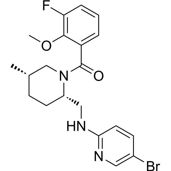 SMILES: | O=C(N1[C@H](CNC2=NC=C(Br)C=C2)CC[C@H](C)C1)C3=CC=CC(F)=C3OC |