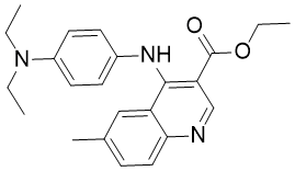 SMILES: | O=C(C1=C(NC2=CC=C(N(CC)CC)C=C2)C3=CC(C)=CC=C3N=C1)OCC |