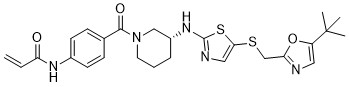 SMILES: | S1C(=CN=C1N[C@H]1CN(C(C2C=CC(=CC=2)NC(C=C)=O)=O)CCC1)SCC1=NC=C(C(C)(C)C)O1 |