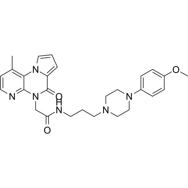 SMILES: | COC1=CC=C(N2CCN(CCCNC(CN3C(=O)C4=CC=CN4C4=C(C=CN=C34)C)=O)CC2)C=C1 |