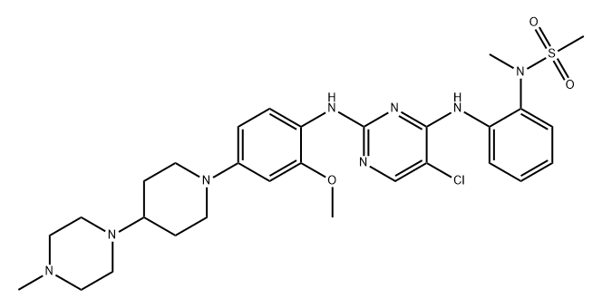 SMILES: | ClC1C=NC(=NC=1NC1C=CC=CC=1N(C)S(C)(=O)=O)NC1C=CC(=CC=1OC)N1CCC(CC1)N1CCN(C)CC1 |