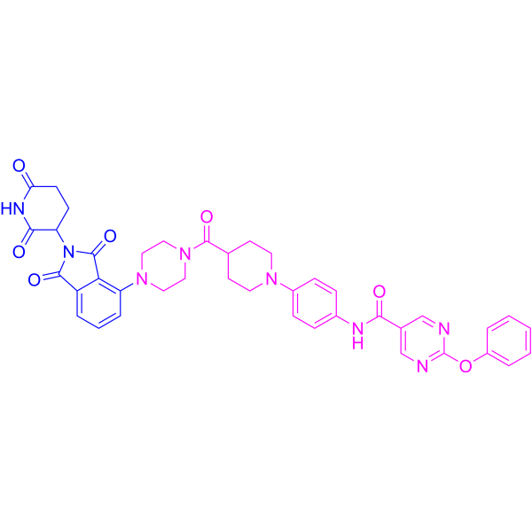SMILES: | C1(OC2=CC=CC=C2)=NC=C(C(NC2=CC=C(N3CCC(C(N4CCN(C5=CC=CC6=C5C(=O)N(C5CCC(=O)NC5=O)C6=O)CC4)=O)CC3)C=C2)=O)C=N1 |