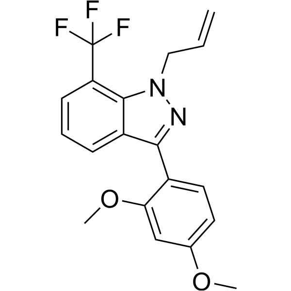 Synonyms: | SGA 293;3-(2,4-dimethoxyphenyl)-1-prop-2-enyl-7-(trifluoromethyl)indazole;SGA360 |