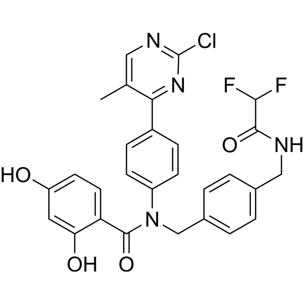 SMILES: | ClC1=NC=C(C)C(C2C=CC(=CC=2)N(C(C2C=CC(=CC=2O)O)=O)CC2C=CC(CNC(C(F)F)=O)=CC=2)=N1 |