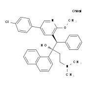 SMILES: | CN(C)CC[C@@](O)(C1=CC=CC2=C1C=CC=C2)[C@H](C3=CC=CC=C3)C4=C(N=CC(C5=CC=C(C=C5)Cl)=C4)OC |