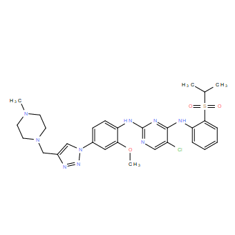 CJ-2360 is a potent and orally active ALK with IC50s of 2.2, 4.0, 8.8, 6.3, and 8.9 nM against wild-type ALK and F1197M, G1269A, L1196M, and S1206Y ALK mutants, respectively. CJ-2360 displays potenty activity against two clinically reported ALK mutants (C1156Y and L1196M) and a few other kinases (LTK, MERTK, CLK1, DAPK1, and DAPK2) among the 468 kinases evaluated.