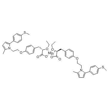 Saroglitazar magnesium is a novel peroxisome proliferator-activated receptor (PPAR) agonist with predominant PPARα and moderate PPARγ activity with EC50 values of 0.65 pM and 3 nM in HepG2 cells, respectively.