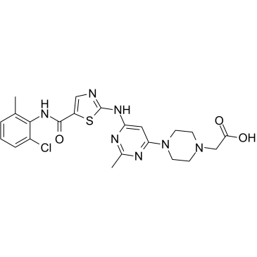 Dasatinib metabolite M6 (Dasatinib carboxylic acid) is an oxidative metabolite of Dasatinib. Dasatinib is a potent and orally active dual Bcr-Abl and Src family tyrosine kinase.