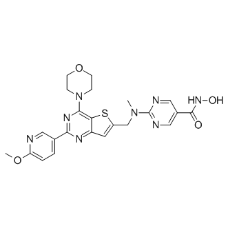 CUDC-907 (PI3K/HDAC Inhibitor I) is a dual PI3K and HDAC inhibitor for PI3Kɑ, HDAC1, HDAC2, HDAC3 and HDAC10 with IC50 of 19 nM, 1.7 nM, 5 nM, 1.8 nM and 2.8 nM, respectively.