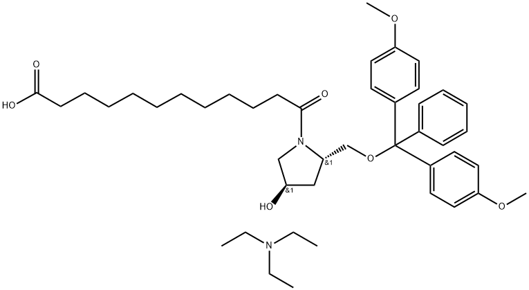 DC67608 | 1-Pyrrolidinedodecanoic acid, 2-[[bis(4-methoxyphenyl)phenylmethoxy]methyl]-4-hydroxy-λ-oxo-, (2S,4R)-, compd. with N,N-diethylethanamine (1:1) Featured |