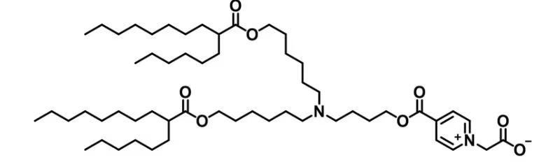 The PyCB (Pyridine Carboxybetaine) lipid is a rationally designed zwitterionic ionizable lipid that serves as a core functional component in the novel three-component (ThrCo) lipid nanoparticle (LNP) platform. It is synthesized by covalently attaching a zwitterionic PyCB structure to the hydroxyl group of the clinically available ionizable lipid ALC-0315.Its key feature is its pH-responsive behavior. At physiological pH (~7.4), the PyCB headgroup exhibits zwitterionic properties, forming charge-assisted hydrogen bonds with water molecules (PyCB-H₂O complexes). This confers high hydrophilicity to the LNP surface, enhancing stability in aqueous environments and reducing nonspecific protein adsorption in the bloodstream. This zwitterionic surface effectively mimics and replaces PEGylated lipids, thereby avoiding PEG immunogenicity and the associated Accelerated Blood Clearance (ABC) effect upon repeated administrations.Crucially, in the acidic environment of endosomes (pH ~6.5), the PyCB group undergoes strong protonation, rapidly transforming into a cationic state (PyCB-H₃O⁺ complexes). This promotes efficient fusion with and disruption of the endosomal membrane, facilitating the escape and cytoplasmic release of encapsulated mRNA.By replacing both cholesterol and PEGylated lipids in traditional LNPs, PyCB lipid enables the redirection of LNP biodistribution from the liver to the spleen, achieving superior spleen-specific mRNA translation and enhancing antigen presentation for potent immune activation.
