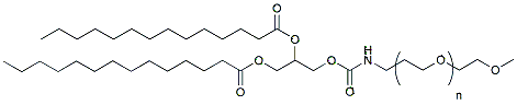 mPEG-DMG, MW 5,000 is a large PEG lipid containing a DMG group and a methoxy cap. The methoxy cap is inert while the DMG group is a popular ligand for developing PEG-lipids and lipid nanoparticles more broadly. Varying the size of a PEG linker greatly impacts its molecular dynamics, thereby affecting DMPK and ADME properties of a given API.
