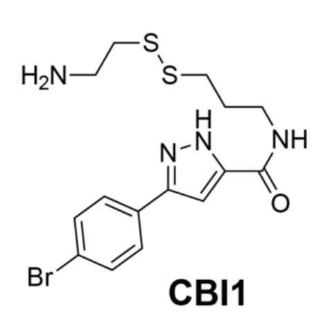 CBI1 (covalent BAX inhibitor 1) is a compound that selectively derivatizes BAX at C126 with BME50 value of 905 μM. CBI1 inhibits BAX activation by triggering ligands or point mutagenesis.