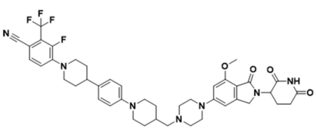 AZ'3137 is an orally bioavailable androgen receptor (AR) degrader that recruit the Cereblon (CRBN) E3 ligase with DC50 of 22 nM (LNCaP) and 92 nM (LNCaP L720H), respectively.