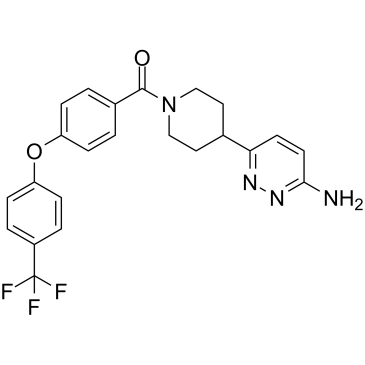 BI-749327 is a potent, high selectivity and orally bioavailable TRPC6 antagonist, with IC50s of 13 nM, 19 nM and 15 nM for mouse, human and guinea pig TRPC6, respectively. BI-749327 is 85-fold more selective for mouse TRPC6 than TRPC3 and 42-fold versus T
