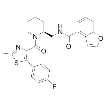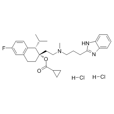 NNC 55-0396, Mibefradil derivative, is a highly selective T-type calcium channel blocker; displays IC50 values of 6.8 and > 100 μM for inhibition of Cav3.1 T-type channels and HVA currents respectively in INS-1 cells. IC50 value: 6.8 nMTarget: Cav3.1 T-type channelNNC 55-0396 can be an essential tool in preventing human ovarian cancer cell proliferation as a result of its ability to inhibit the function of T-type Ca2+ channels. It is believed that NNC 55-0396 may functions by dissolving in or passing through the plasma membrane of cells.