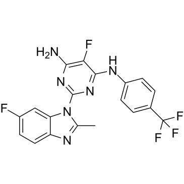 TH-263 is an inactive analog control for the type III allosteric LIM-kinase (LIMK) inhibitors TH-257, TH-255 and TH-251. LIM kinases belong to the family of cytoplasmic tyrosine-like kinases with dual specificity (serine/threonine and tyrosine). However, known LIMK substrate are usually phosphorylated at serine and threonine residues LIM kinases comprises LIM kinase 1 (LIMK1) and LIM kinase 2 (LIMK2) which show 50% sequence identity in human. Both LIMK1 and LIMK2 present with a unique domain organization containing two N-terminal LIM domains, a PDZ domain, a proline/serine-rich domain and a C-terminal kinase domain.