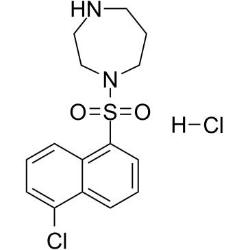 ML-9 is a selective and potent inhibitor of Akt kinase, inhibits myosin light-chain kinase (MLCK) and stromal interaction molecule 1 (STIM1) activity. ML-9 inhibits inhibits MLCK, PKA and PKC activity with Ki values of 4, 32 and 54 μM, respectively. ML-9 induces autophagy by stimulating autophagosome formation and inhibiting their degradation.