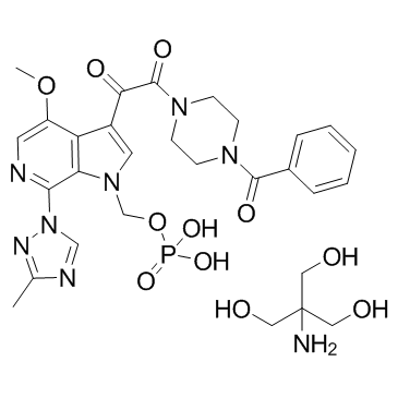 Fostemsavir Tris (BMS-663068 (Tris)) is the phosphonooxymethyl prodrug of BMS-626529. Fostemsavir Tris (BMS-663068 (Tris)) is a novel attachment inhibitor that targets HIV-1 gp120 and prevents its binding to CD4+ T cells.