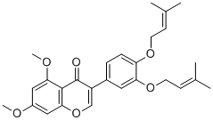 Glabrescione B (GlaB) is a small molecule binding to Gli1 zinc finger and impairing Gli1 activity by interfering with Gli1/DNA interaction, inhibits Hh signaling by impairing Gli1 function; inhibits the growth of Hedgehog-dependent tumor cells in vitro and in vivo, inhibits Gli1-dependent growth of cerebellum-derived normal progenitors; inhibits the growth of Gli-dependent medulloblastoma and tumor-derived stem-like cells; inhibits the growth of Gli-dependent basal cell carcinoma in vitro and in vivo.