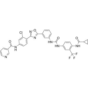 BAY 61-3606 is a potent, ATP-competitive, reversible, and highly selective inhibitor of Syk tyrosine kinase with Ki of 7.5 nM, displays no inhibitory effect against Btk, Fyn, Itk, Lyn, and Src.