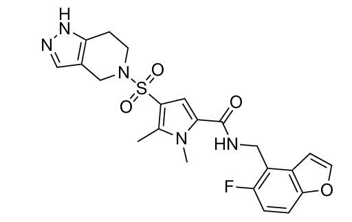 GNF-PF-3777 (8-Nitrotryptanthrin) is a potent human indoleamine 2,3-dioxygenase 2 (hIDO2) inhibitor which significantly reduces IDO2 activity with Ki of 0.97 μM.
