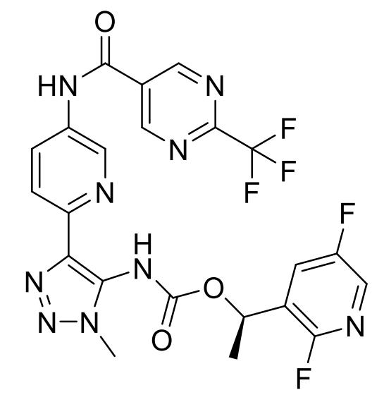 JNJ525 is a small molecule inhibitor that targets tumor necrosis factor alpha (TNFα), a cytokine involved in inflammation and immune regulation. TNFα exerts its biological effects by binding to its receptors, TNFR1 (TNF receptor 1) and TNFR2 (TNF receptor 2). JNJ525 works by preventing the formation of TNFα complexes with these receptors, thereby inhibiting TNFα-mediated signaling pathways.