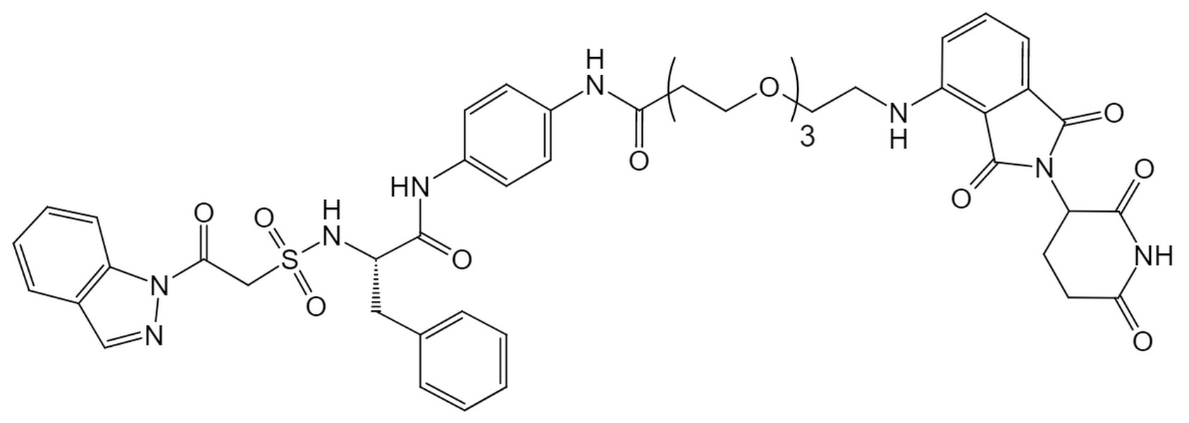 PT-129 is a potent G3BP1/2 PROTAC degrader and dissolves preformed stress granules (SG). PT-129 disrupts the protective SG environment, making cancer cells more susceptible to stress-induced cell death.