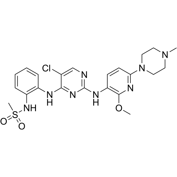 ZX-29 is a potent and selective ALK inhibitor with an IC50 of 2.1 nM, 1.3 nM and 3.9 nM for ALK, ALK L1196M and ALK G1202R mutations, respectively. ZX-29 is inactive against EGFR. ZX-29 induces apoptosis by inducing endoplasmic reticulum (ER) stress and overcomes cell resistance caused by an ALK mutation. ZX-29 also induces protective autophagy and has antitumor effect.
