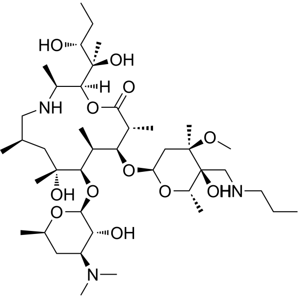 Tildipirosin is a 16-membered macrolide used as an antibiotic in veterinary medicine. Like other macrolides, it inhibits protein synthesis in bacteria and blocks the production of biofilms.