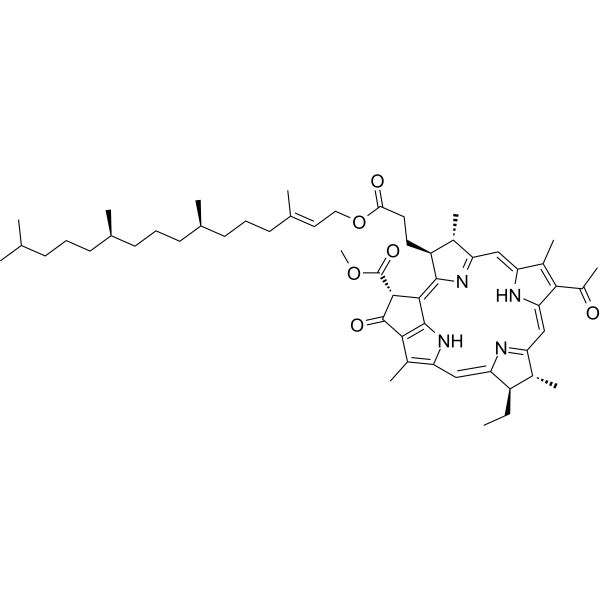 Photochlor, also known as HTTP, is a lipophilic, second-generation, chlorin-based photosensitizer. Upon intravenous administration, HPPH selectively accumulates in the cytoplasm of cancer or pre-cancerous cells. When laser light is applied, a photodynamic reaction between HPPH and oxygen occurs, resulting in the production of cytotoxic free radicals and singlet oxygen and free radical-mediated cell death. Compared to the first-generation photosensitizer porfimer sodium, HPPH shows improved pharmacokinetic properties and causes only mild skin photosensitivity which declines rapidly within a few days after administration.