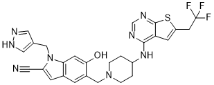 DS-1594a (Emilumenib) is a highly potent Menin-MLL1 inhibitor with IC50 of 1.4 nM in cell-free AlphaLISA assays, displays selective growth inhibition against AML and ALL cells with MLL1-r or NPM1c.