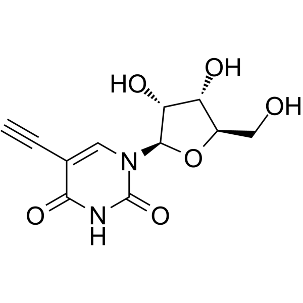 5-Ethynyluridine (5-EU) is a potent cell-permeable nucleoside can be used to label newly synthesized RNA. 5-Ethynyluridine can be used for isolation and sequencing of nascent RNA from neuronal populations in vivo. 5-Ethynyluridine can be used to identify changes in transcription in vivo in nervous system disease models.