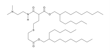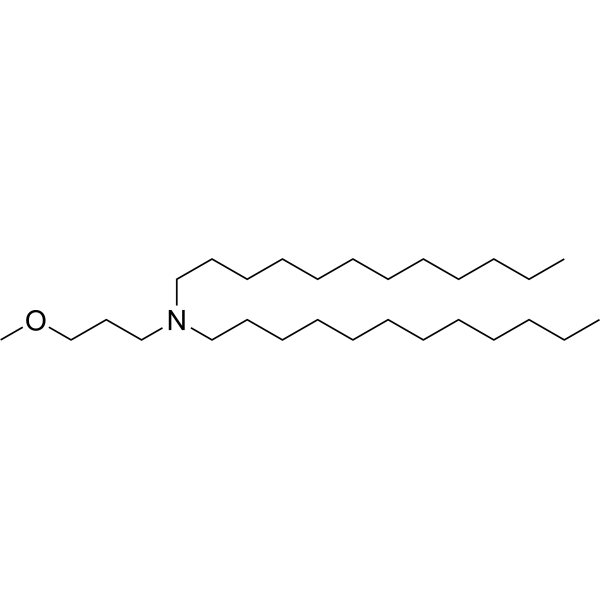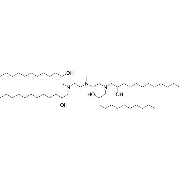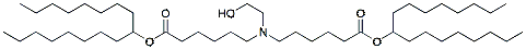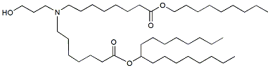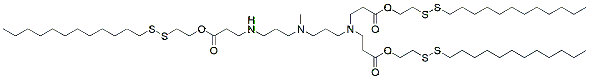 Al-28 is a multi-ionizable aminolipid featuring a central amine and three identical disulfide-linked saturated side chains. The hydrophobic side chains are linked to the central structure by ester as well as disulfide bonds. Disulfide bonds are readily cleaved in the reducing environment of the cell cytoplasm. Ionizable lipids are typically used in the design of nucleic acid lipid nanoparticles, as their pH-dependent positive charge stabilizes the anionic nucleic acids they encapsulate.