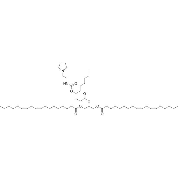 Lipid 50 (compound 50) is an ionizable lipid that can be used for the generation of lipid nanoparticles (LNPs). Lipid 50 is a carrier for both siRNA and mRNA.