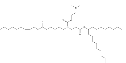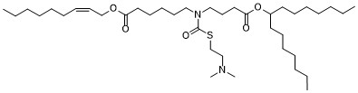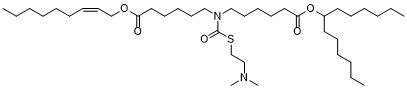 C13-113-tri tail is an ionizable lipid molecule containing a polar amino alcohol head group, three hydrophobic carbon-13 tails, and a tertiary amine linker. The lipoid can be formulated into a lipid nanoparticle (LNP) to deliver anionic substrates in vitro and in vivo. This includes siRNA to induce gene silencing in a sequence-specific manner, CAS9 mRNA, and cytotoxic proteins. Reagent grade, for research purpose. Please contact us for GMP-grade inquiries.