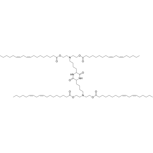 OF-Deg-Lin is a biodegradable lipid containing an ester group, developed from the nonbiodegradable, linoleic acid derived OF-02; mRNA-LNPs containing OF-Deg-Lin showed high expression in the spleen. The ionizable lipid Of-Deg-Lin was synthesized,