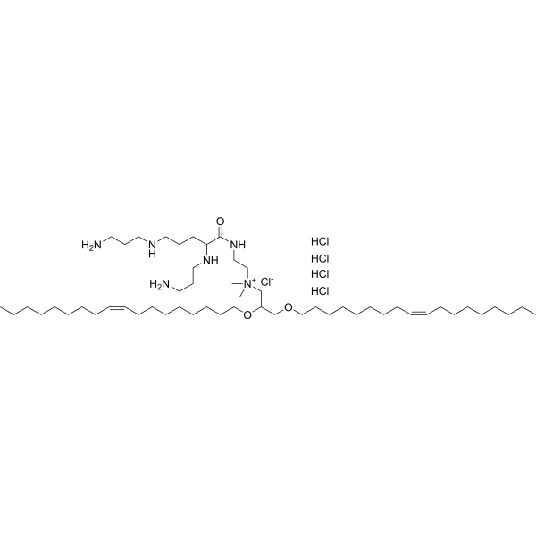 GL67 (N4-Spermine cholesteryl carbamate) in its pentahydrochloride form is a cationic lipid with versatile applications in the delivery of nucleic acid agents, vaccines, and gene transfection, owing to its efficient encapsulation and transport capabilities.GL67 (N4-Spermine cholesteryl carbamate) in its pentahydrochloride form is a cationic lipid with versatile applications in the delivery of nucleic acid agents, vaccines, and gene transfection, owing to its efficient encapsulation and transport capabilities.