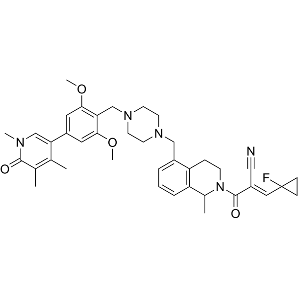 KRAS ligand 4 (compound 2) is a SOS1-targeting bifunctional molecular glue that suppresses oncogenic signaling by degrading key KRAS pathway components, evidenced by reduced pERK and pS6 levels. It demonstrates broad-spectrum activity against diverse KRAS mutations, disrupting proliferation across resistant cancer models.