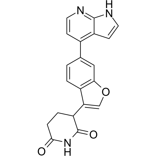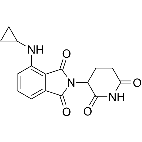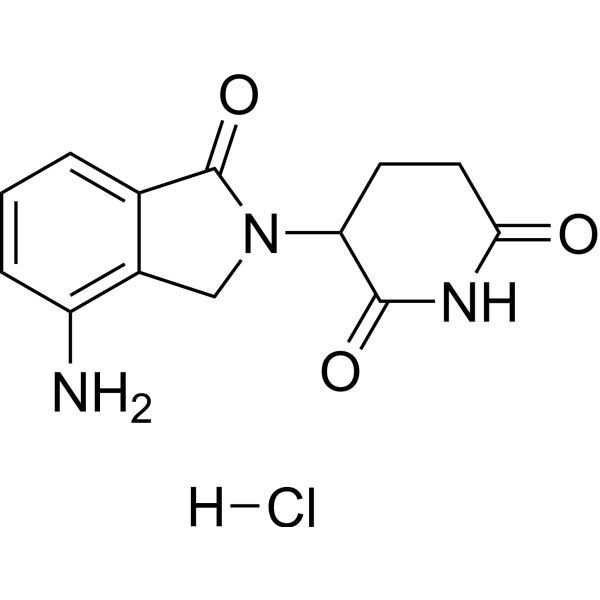 Lenalidomide hydrochloride (CC-5013 hydrochloride), a thalidomide-derived molecular glue, functions as an orally bioavailable immunomodulatory agent. By binding to the ubiquitin E3 ligase cereblon (CRBN), it recruits the CRBN-CRL4 complex to induce selective ubiquitination and degradation of lymphoid transcription factors IKZF1 and IKZF3. This mechanism underlies its potent activity against mature B-cell malignancies, including multiple myeloma, while also stimulating IL-2 secretion from T cells.